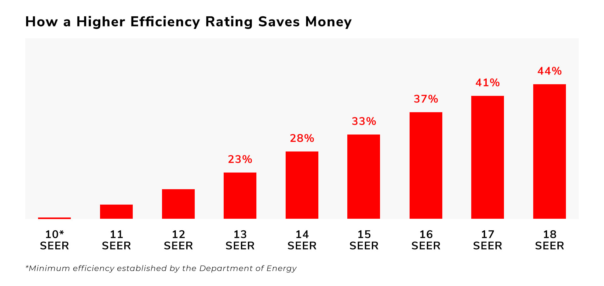 By upgrading to a high efficiency air conditioner or heat pump, you could see substantial savings depending on: