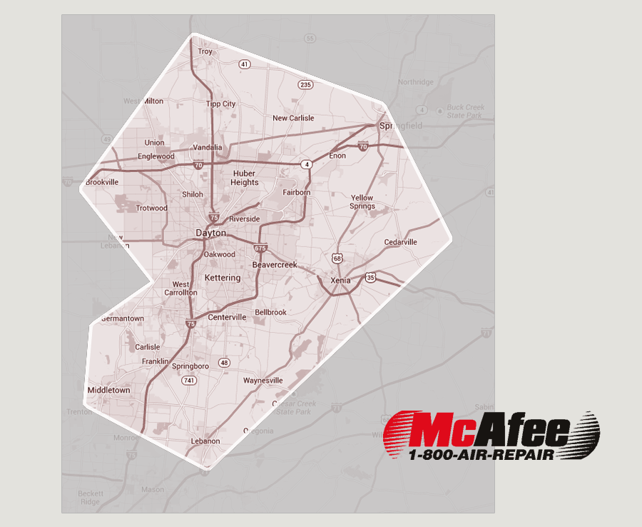 McAfee Heating and Air Conditioning is a locally owned, Dayton, Ohio area company. Find out if your home is within our service area using your home’s zip code.